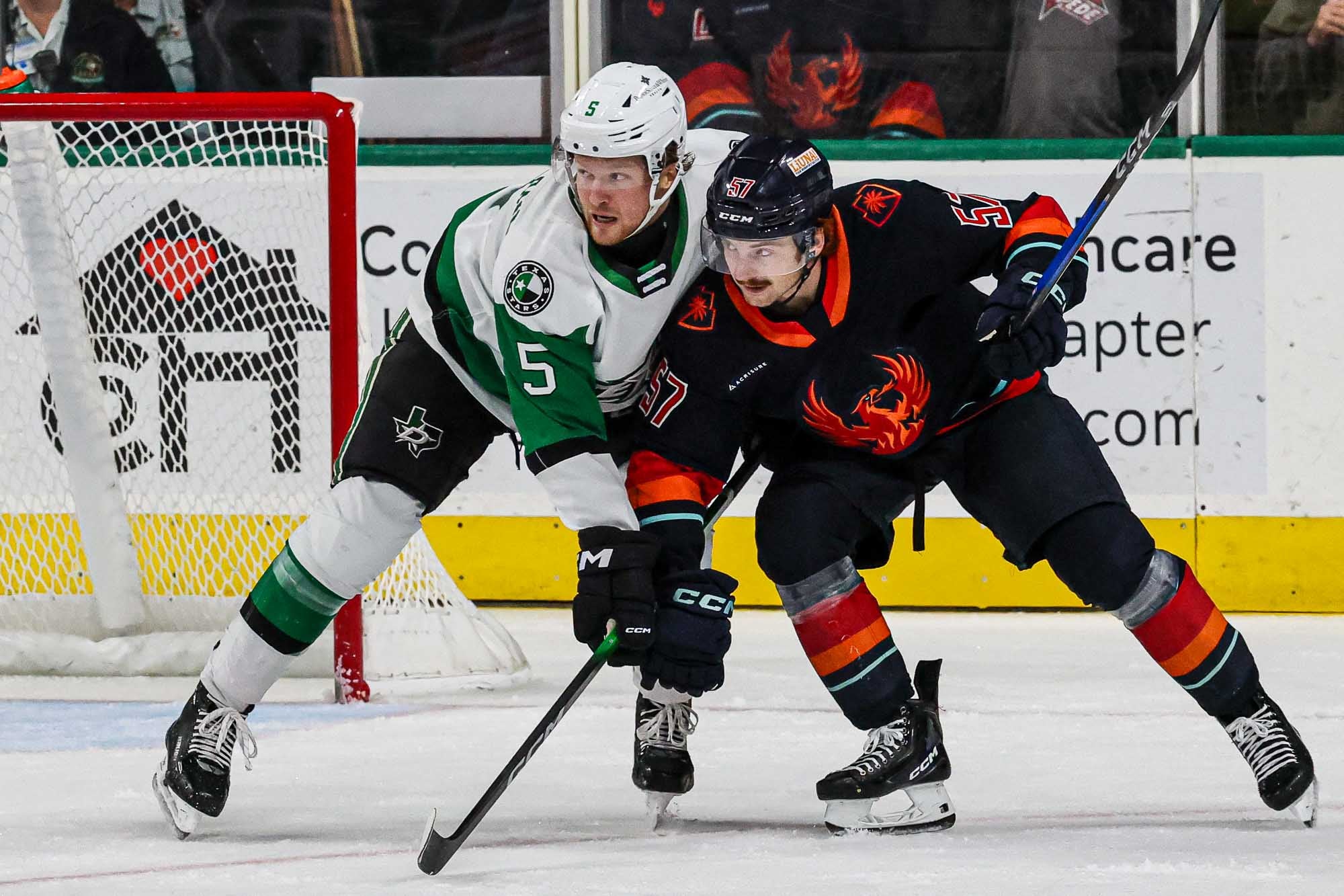 Another bad bounce off the boards went the way of Coachella Valley with six minutes left as Nyman found his second goal of the game. Texas pulled Poirier for the extra attacker but could not complete the comeback. John Hayden added an empty-net goal to make it 6-3.