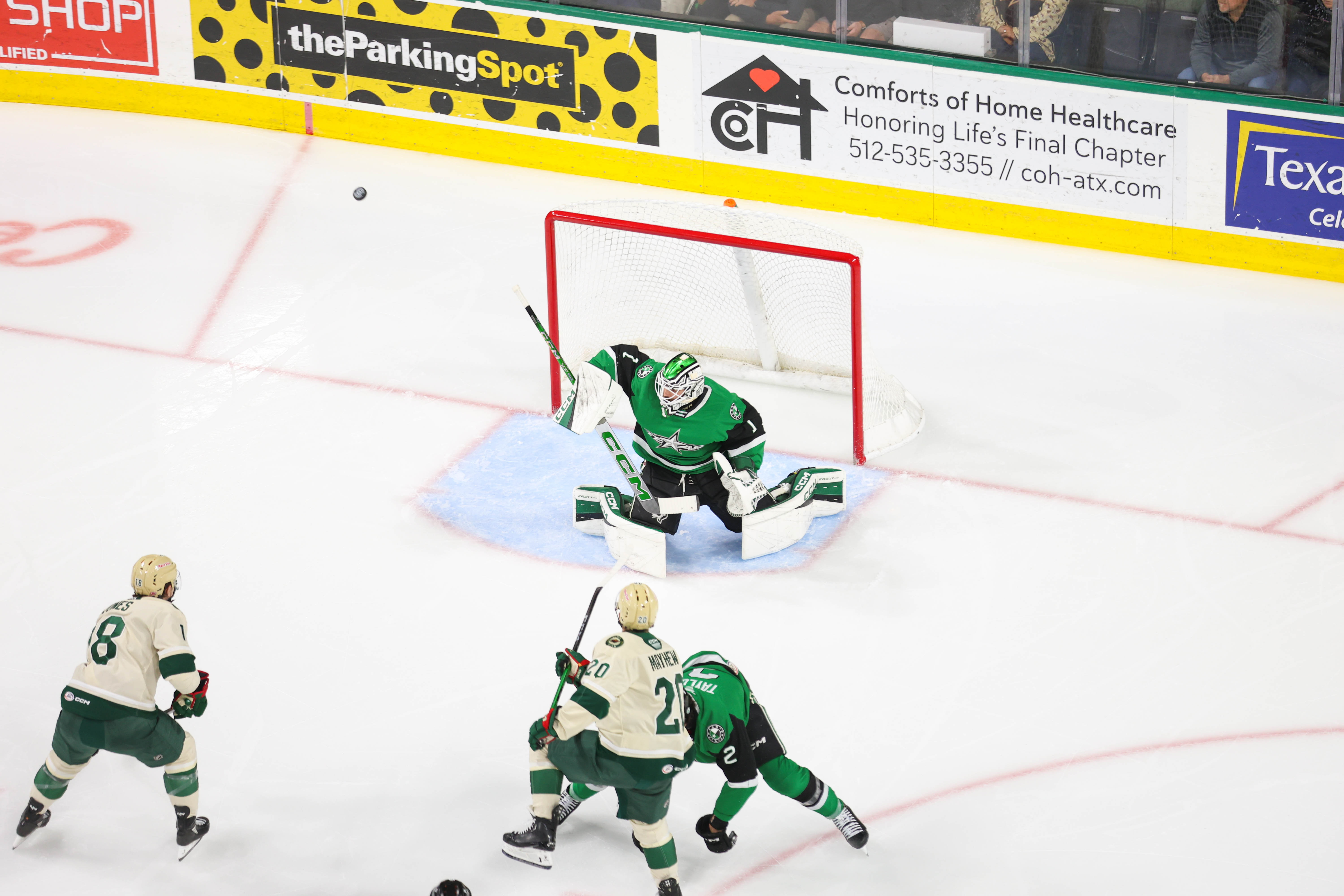 The Stars tied the game 2-2 just 2:38 into the final frame when Jack Anderson blasted a shot through traffic from the top of the right face-off circle. The goal was Anderson’s first in the pros since signing with Texas following his senior season at Michigan Tech.
